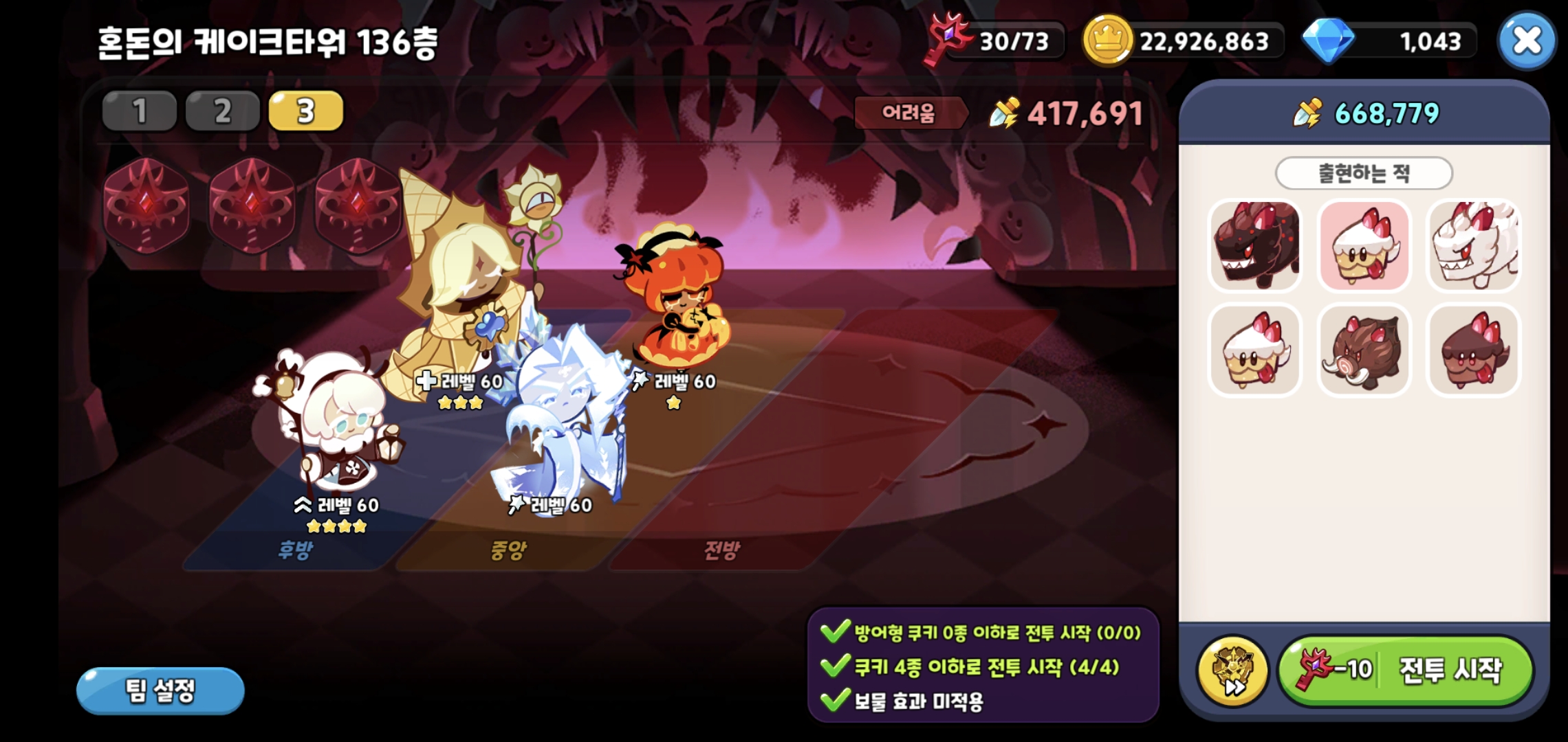 1. 방어형 쿠키 0종 이하로 전투 시작
